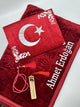 Kadife Kutulu Kur'an-ı Kerim İsme Özel Aydın Seccade Kombin Set (Krem/Beyaz)